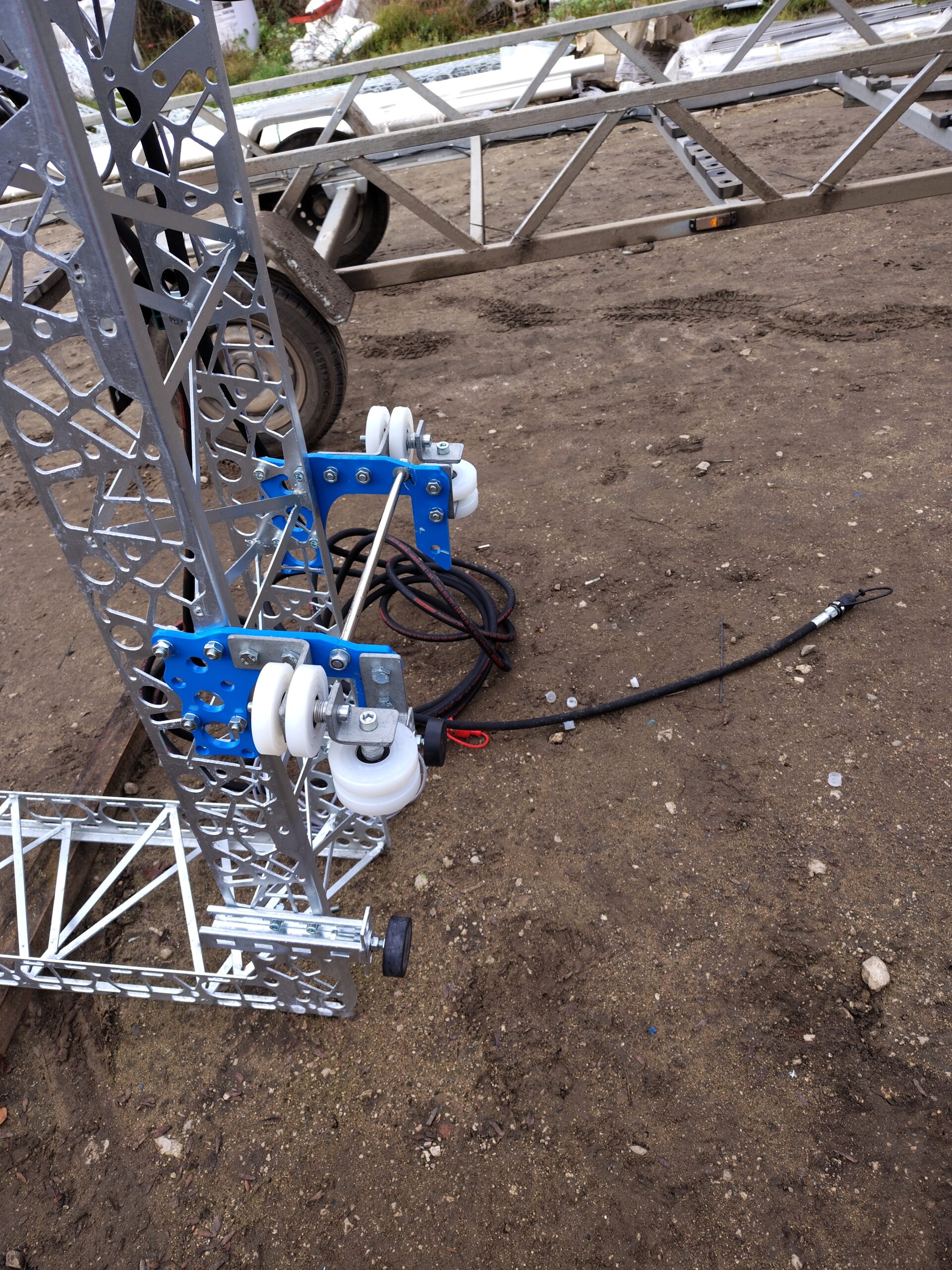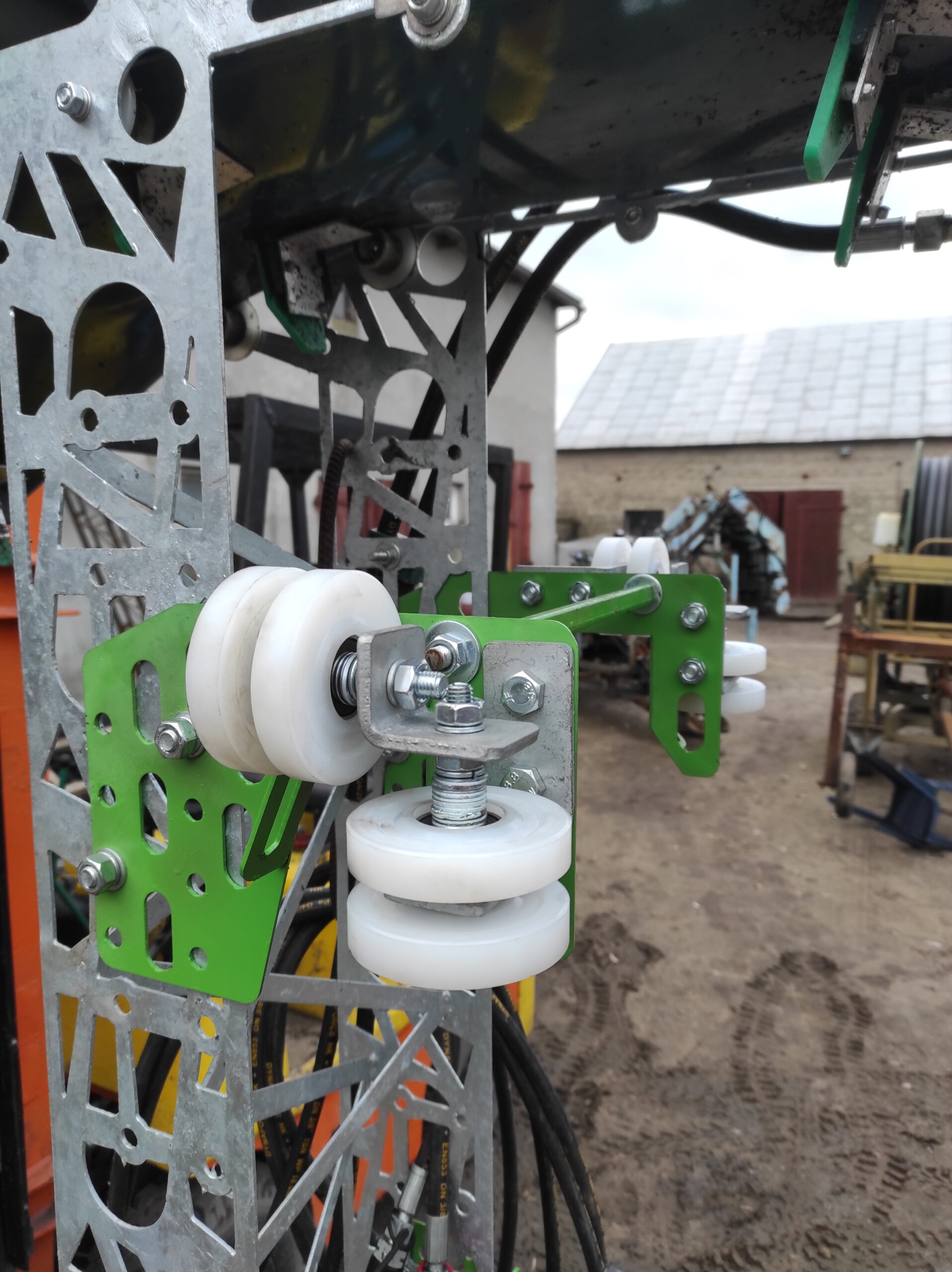 Haki wyposażone są w rolki, które ułatwiają przesuwanie taśmociągu wzdłuż burty (przesuwanie w linii przód/tył przyczepy).