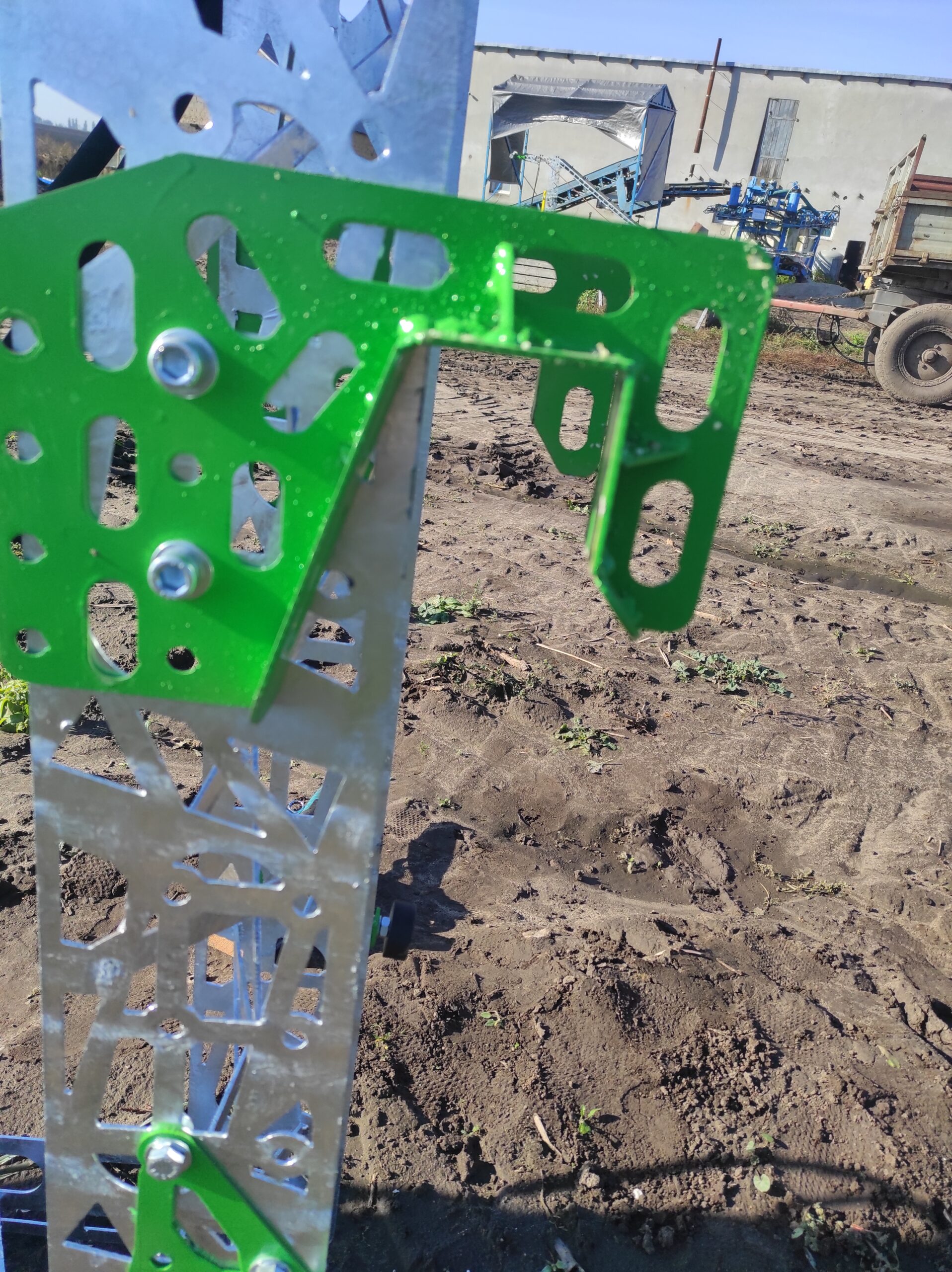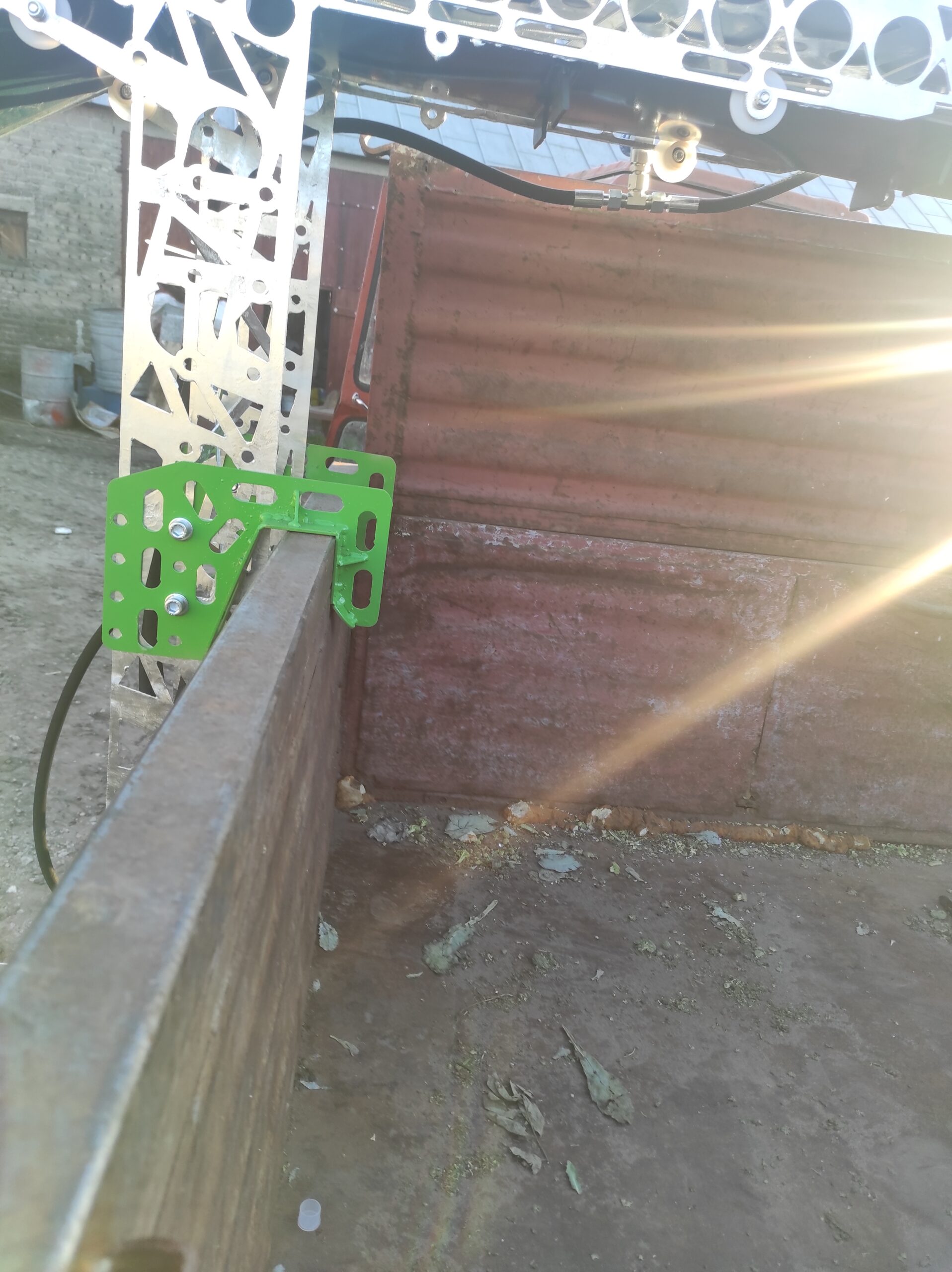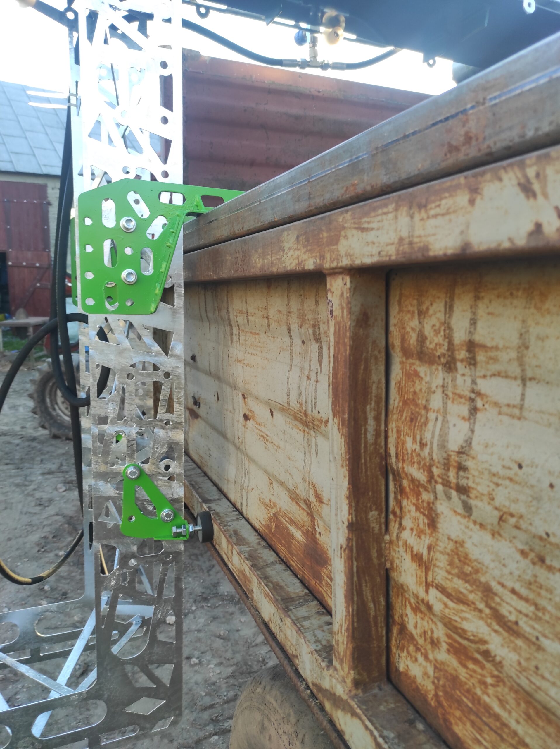 Haki i odboje umożliwiają szybki i prosty montaż taśmociągu do przyczepy ze skrzynią załadunkową i burtami bocznymi.